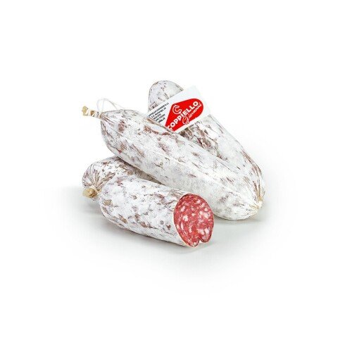 Add cubed toasted bread to taste and serve your curly escarole salad with a fan of horse salami slices.