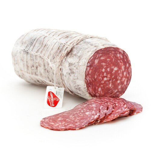 A genuine and flavorful product, made from high-quality horse and pork meats, expertly minced and seasoned with selected herbs and spices. The sausage is stuffed into natural casings and undergoes a drying process of at least 24 hours to enhance its taste and texture. Vacuum-packed in a thermoformed tray with controlled atmosphere, it preserves all the freshness and aroma of tradition. Perfect for those seeking an authentic and high-quality experience.