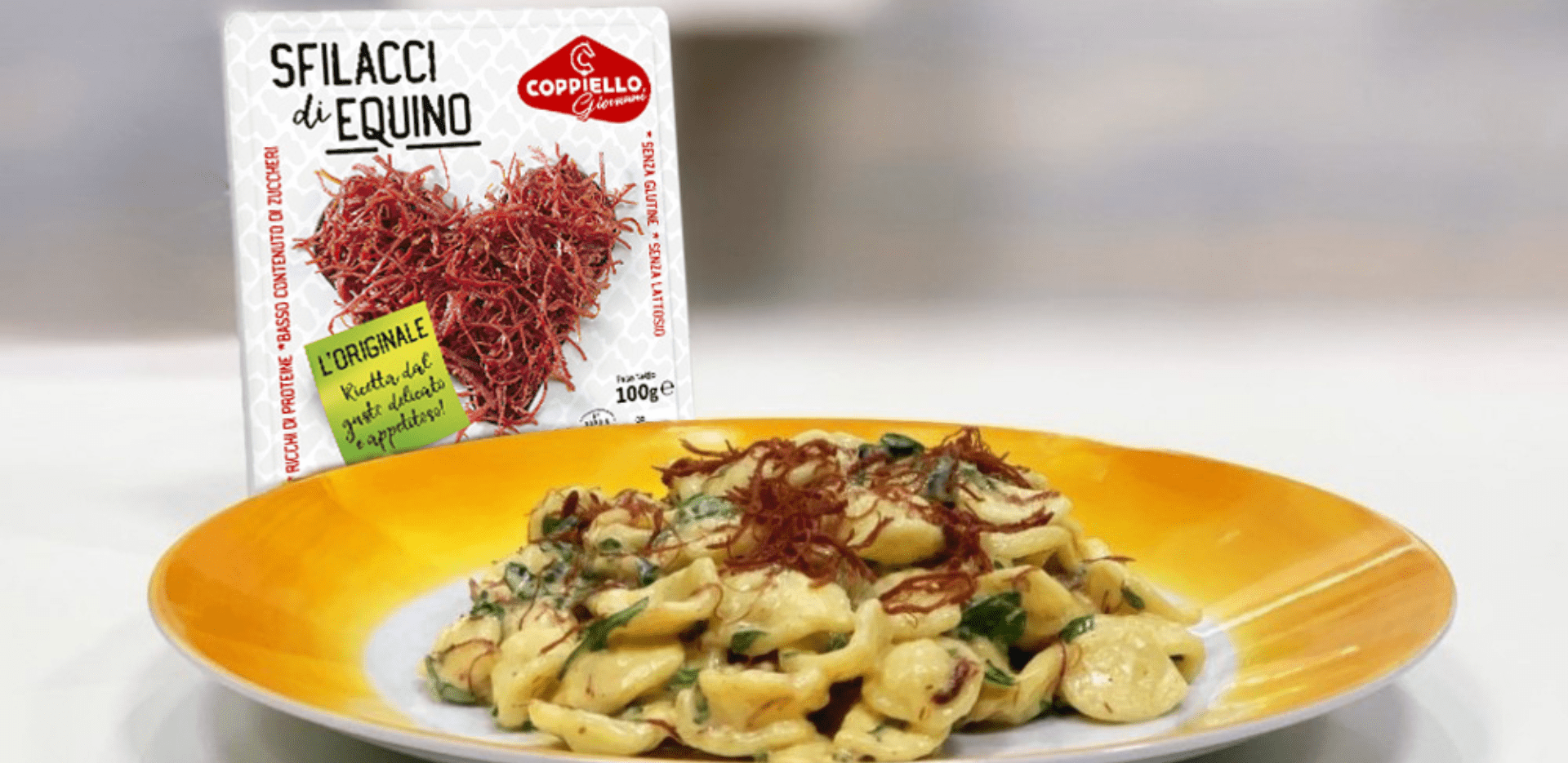 Orecchiette pasta with pulled horsemeat and rocket leaves