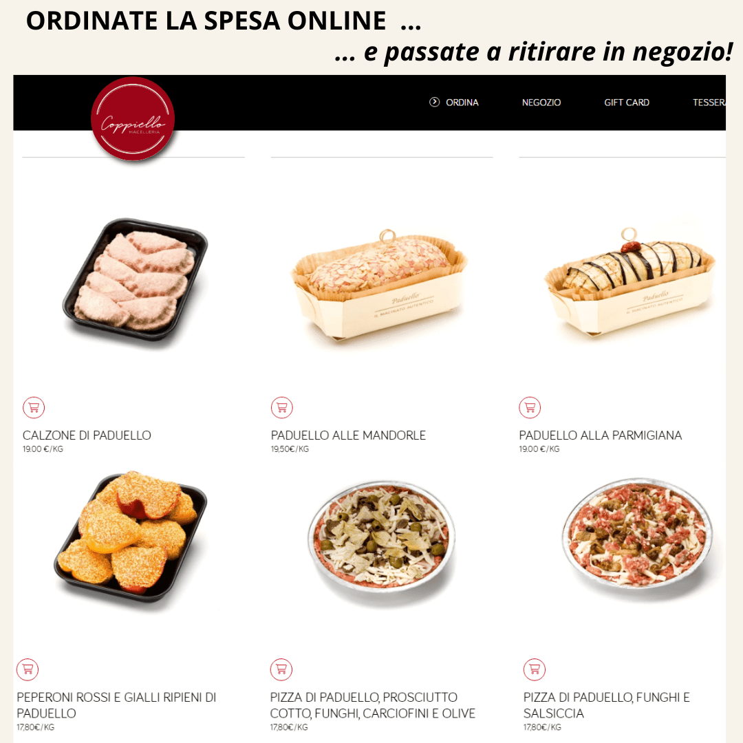 Vi basterà cliccare qui, scegliere la tipologia di carne, selezionare la quantità o il peso, ordinare; poi vi basterà passare in negozio, andare direttamente alla cassa, ritirare il vostro ordine e pagare.